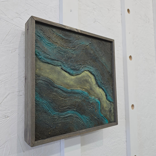 "Terrain studies" 10x10 mixed media on wood panel then framed.