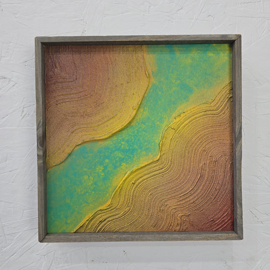 "Terrain studies" 10x10 mixed media on wood panel then framed.